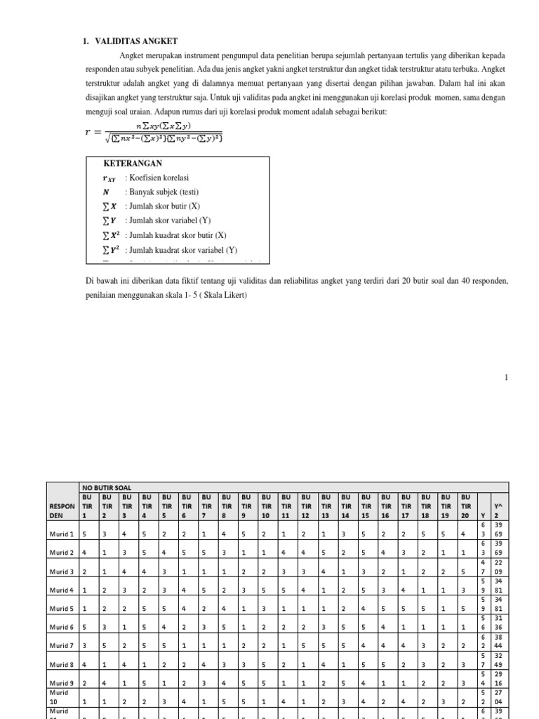 Dalam dunia penelitian, menghitung validitas angket sangat penting untuk memastikan data yang diperoleh akurat. Salah satu cara menghitung validitas angket dengan Excel adalah dengan menggunakan analisis korelasi. Pertama, siapkan data hasil angket dalam format tabel. Selanjutnya, gunakan fungsi CORREL untuk menghitung koefisien korelasi antar item angket dan total skor.